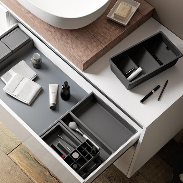 ONDA Line accessories for upper drawer are the ideal solution for the best organization of bathroom drawers.