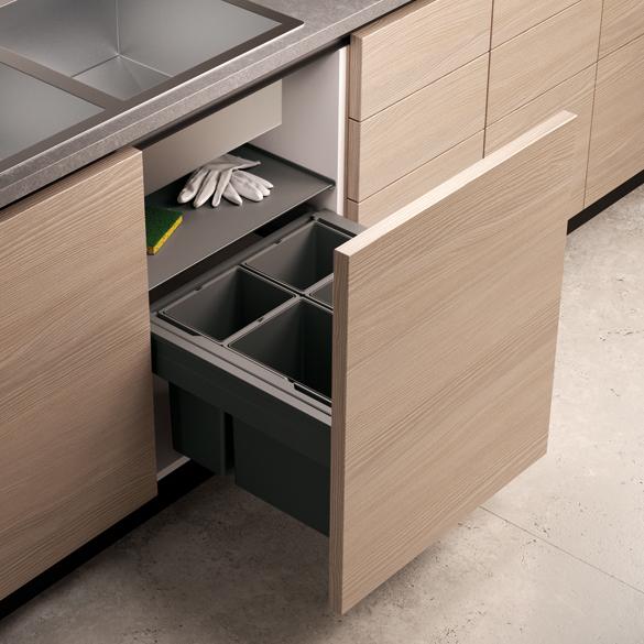 The line is available for bases from 300mm to 900mm and with different heights, depths, and combinations of bins.