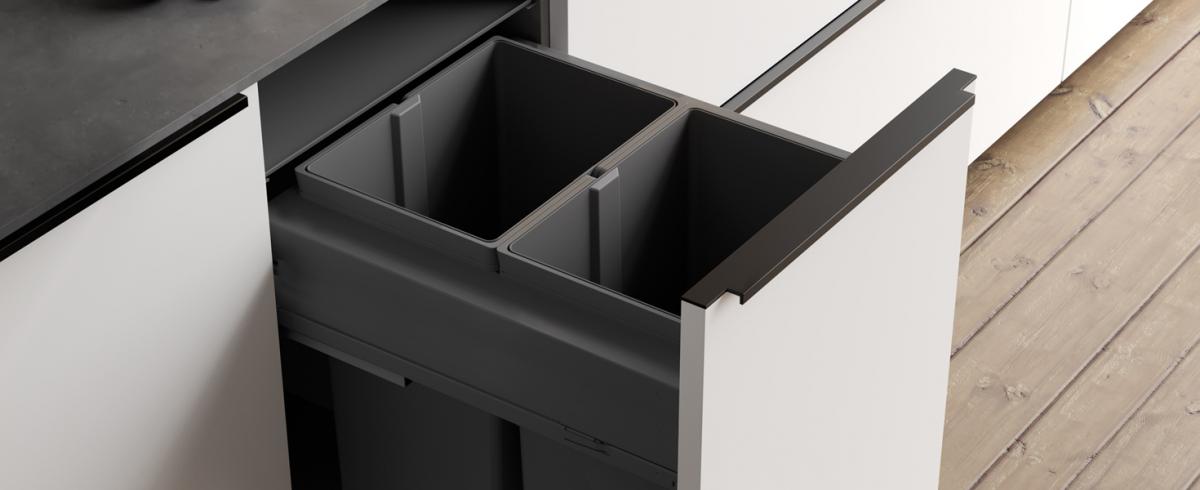 Capacité : deux bacs avec capacité 17L chacun et deux bacs avec capacité 8L chacun.