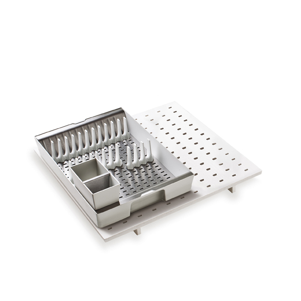 Le plateau-égouttoir est amovible et utilisable assui bien dans le tiroir que sur le top de la cuisine pour une meilleure organisation quotidienne.