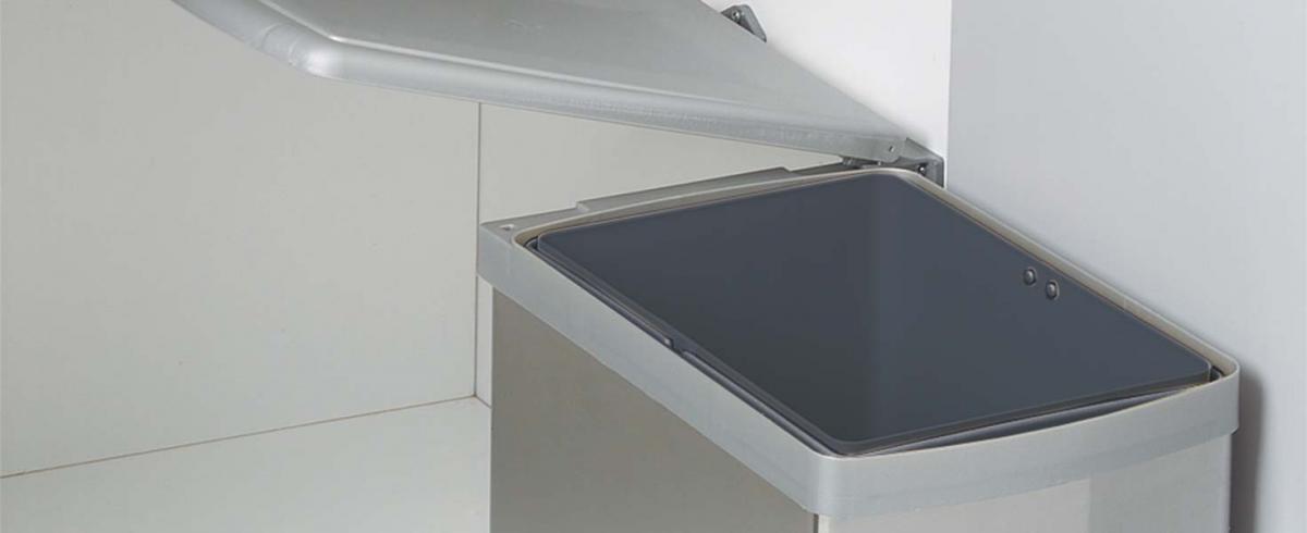 I raccoglitori della Linea 200 sono studiati per il fissaggio all'anta del mobile della cucina.